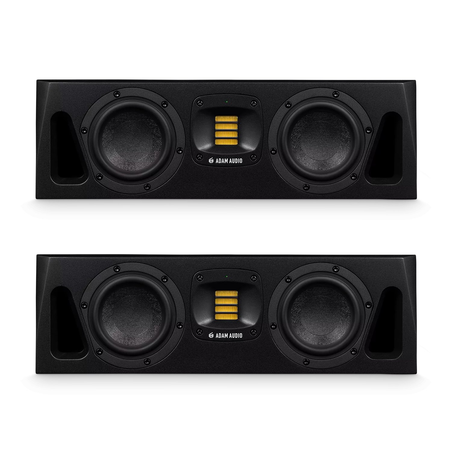 Adam Audio’s A44H takes design cues from the A Series A7V and packages them into a low-profile horizontally-oriented studio monitor. This 2-way powered monitor comes loaded with two 4-inch, long-throw woofers with plenty of punch and clarity to spare. Users will enjoy crisp, dynamic high-end, courtesy of the upgraded X-ART accelerated-ribbon tweeter. Another approved feature is the onboard DSP-based tuning system that tailors the monitor’s response to the characteristics of your control room. The A44H’s cabinet measures 19 inches in width, allowing it to be used on a standard rack shelf or be mounted above or below a display. With its extended frequency response, wide dynamic range, and broad sweet spot, A44H is an outstanding candidate for stereo setups and immersive systems alike!