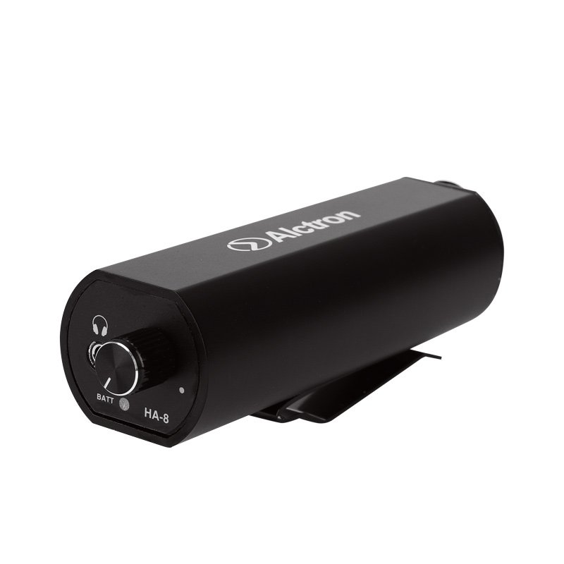 Alctron HA-8 is an active converter, belt-pack for personal monitor application. Its built-in battery helps HA-8 to performance. XLR or 1/4’’ make plugs connection of a personal monitor mix. VOLUME knob adjusts the output level and powers the unit off when turned counterclockwise. The adjacent green LED will lit when the power is on. The MONO/STEREO switch should be set to MONO when used with a mixer’s aux send or any other mono source and set to STEREO when connected to a headphone output or other stereo source.