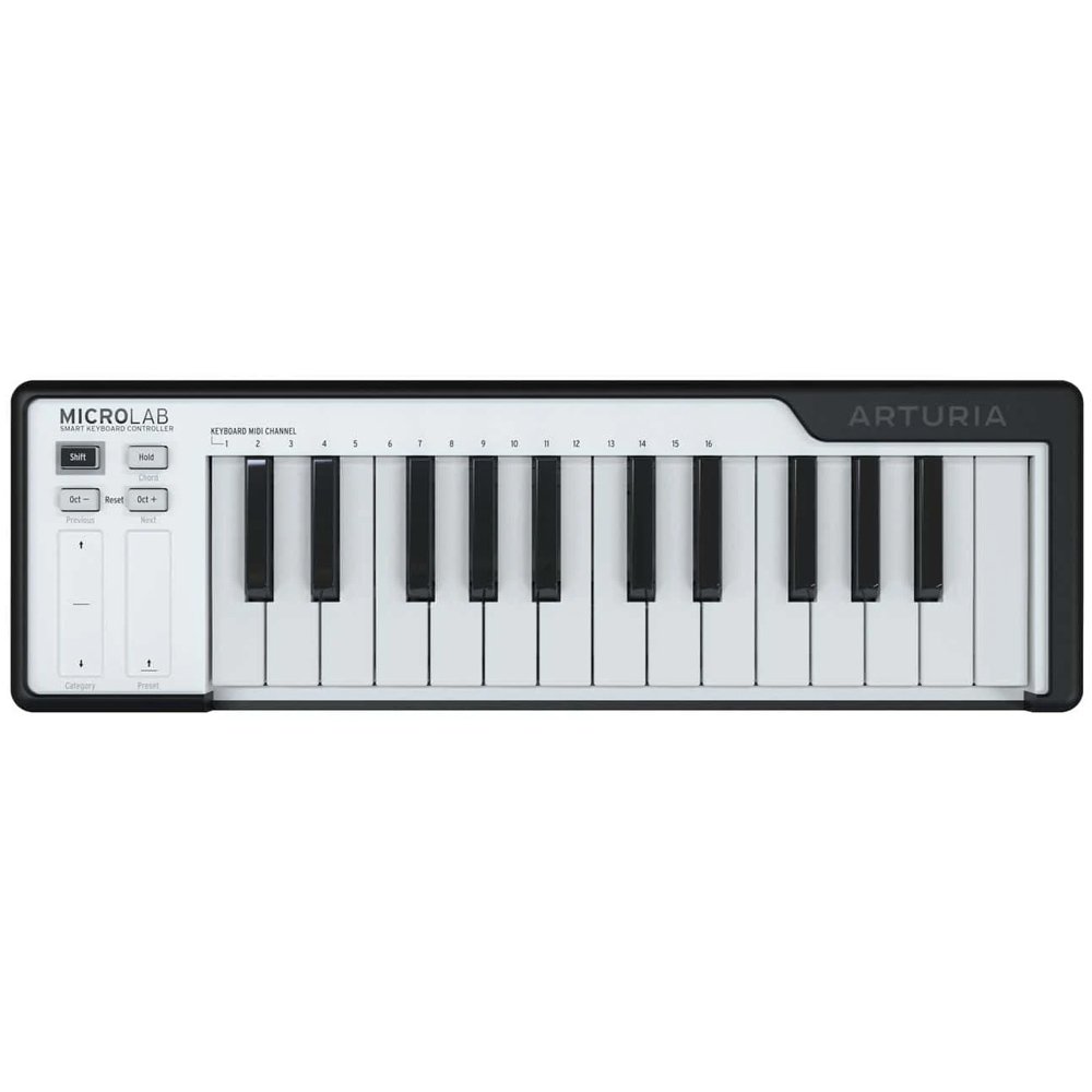Looking for a compact MIDI controller with lots of power under the hood? The Arturia MicroLab 25-key controller allows you to get more from your MIDI controller. This versatile keyboard features velocity-sensitive keys, touch-sensitive pitch, and modulation strips to shape your sound. The MicroLab includes a free download of Analog Lab Lite, a full production software with over 600 keyboard and synth sounds. The creators love the built-in chord mode that lets them program a chord, then play it across the whole keyboard with a single key. For storage, the USB cord securely wraps around the unit. Whatever music you want to make, you can do it with the Arturia MicroLab controller.