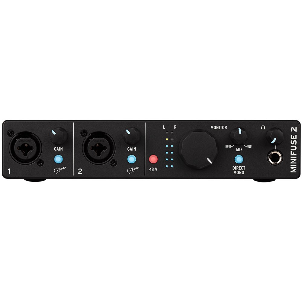 Part of Arturia’s award-winning AudioFuse line of interfaces, the MiniFuse 2 is an ultra-compact USB audio interface ideal for home studios and mobile recording rigs. Featuring two top-notch preamps, the MiniFuse 2 boasts professional-grade fidelity and supports sample rates up to 192kHz. This straightforward interface includes a front-panel headphone jack, with independent volume control and an input/USB mix knob for zero-latency monitoring. Electronic musicians are happy to find traditional 5-pin MIDI DIN I/O connections for integrating old-school synths and drum machines. You’ll also find a convenient USB-A hub port for reduced studio clutter, supporting any USB-A device, including MIDI, up to 250 milliamps. Content creators will be excited about the MiniFuse 2’s virtual stereo loopback channel, which allows you to monitor and record your computer’s audio while also using the interface’s two analog inputs. And to get you started creating right out of the box, the MiniFuse 2 includes a software package featuring some of Arturia’s most popular plug-ins!