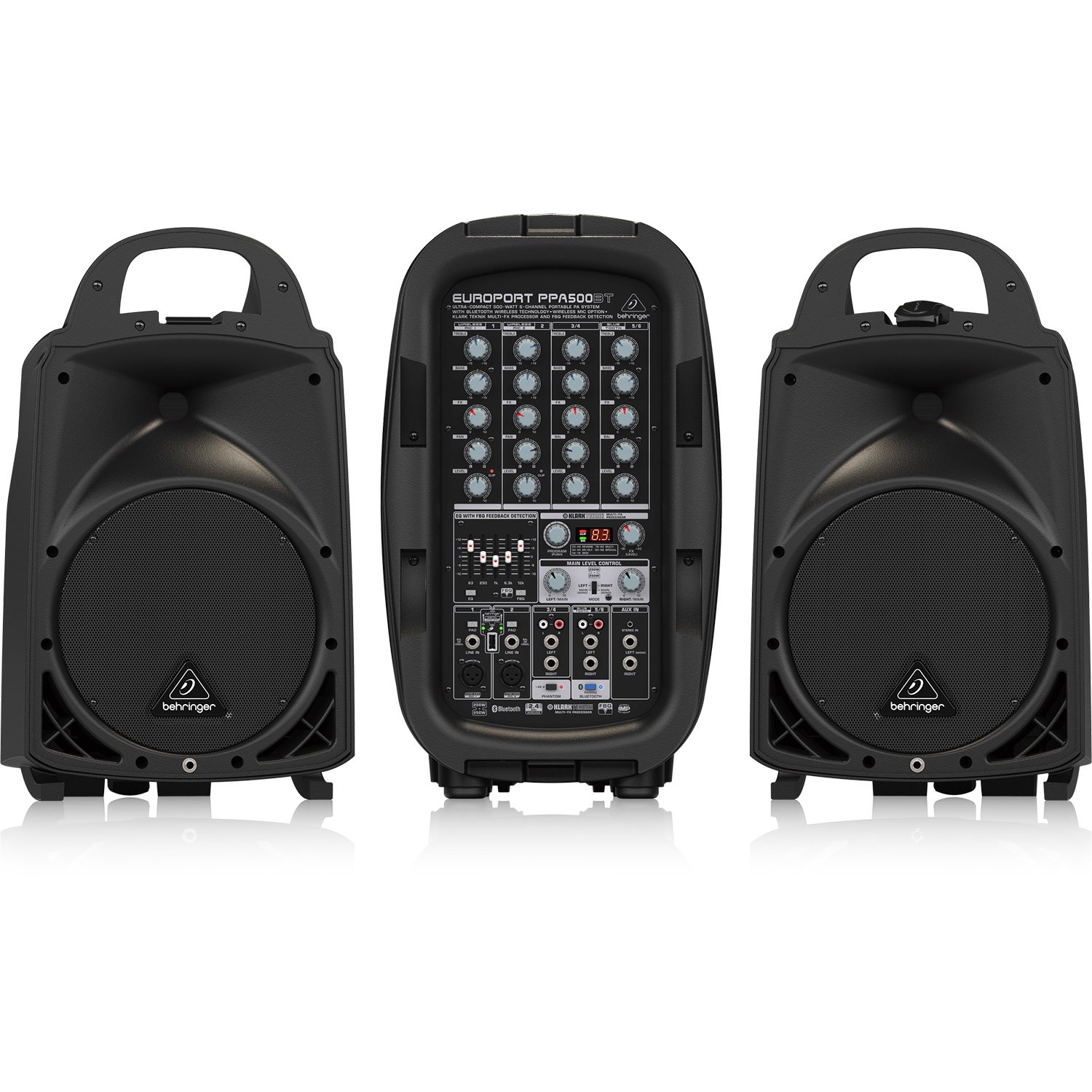 Behringer Europort PPA500BT 500-watt Portable PA System Features: