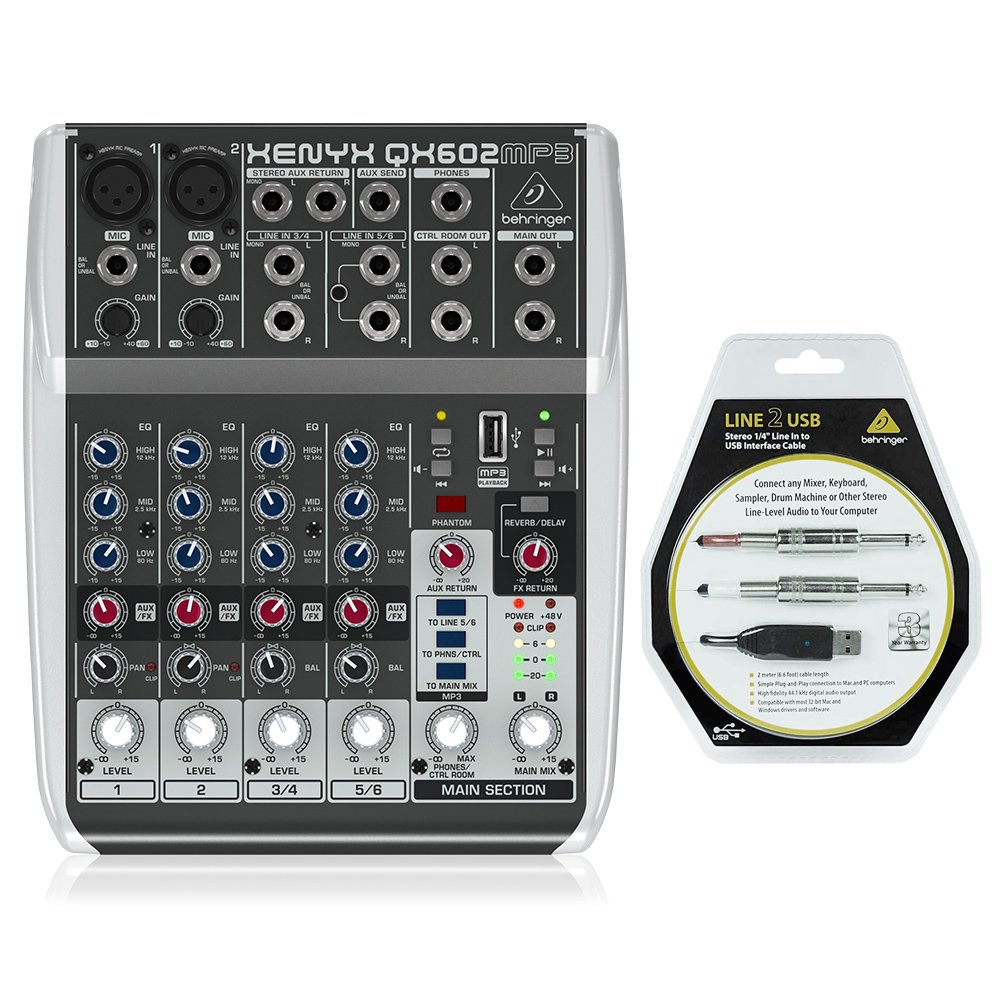 Behringer Xenyx QX602MP3 Mixer with USB MP3 Playback features:
