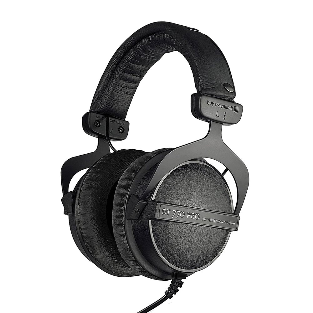 These closed-design headphones are designed for serious studio use. The DT 770 Pro have a 250-ohm impedance, 5Hz-35kHz frequency response, and a comfortable closed-ear design.