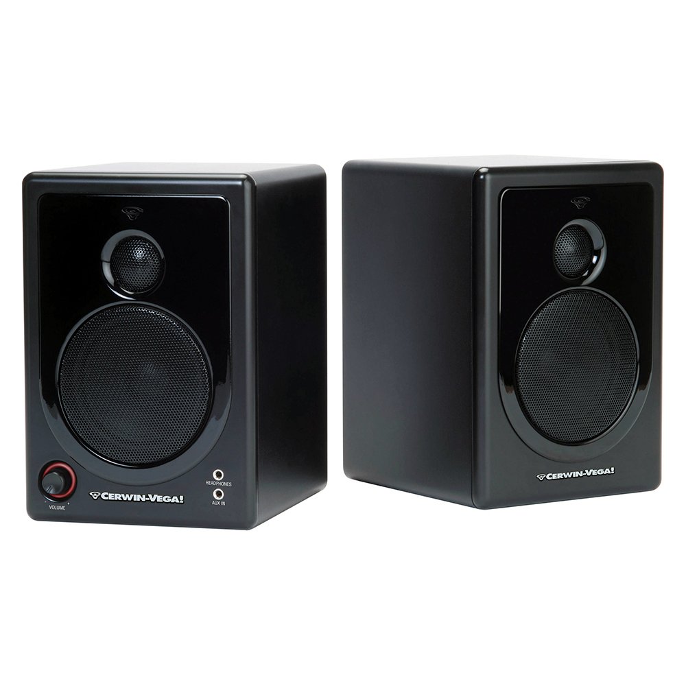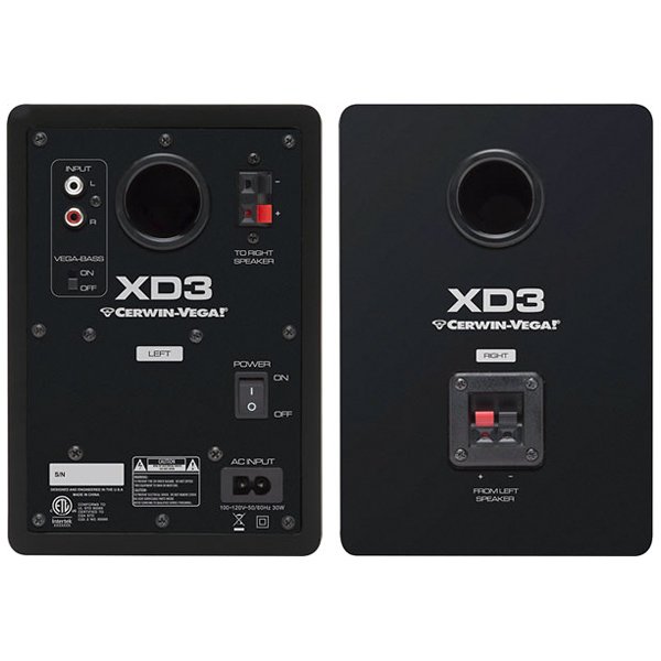 The Cerwin Vega XD3 – 3″ Active Desktop Monitor System (Pair) is designed for listening to music, computer gaming, and media production. The speakers utilize a built-in 30 W plate amplifier (with 15 W for each channel) to power a 3/4″ soft silk-dome high frequency tweeter and a 3″ low frequency woofer in a custom designed rear port wooden enclosure to deliver a frequency response of 88 to 21,000 Hz. A rear-panel bass boost switch enhances the low frequency response. An illuminated volume knob allows you to control the overall output level.