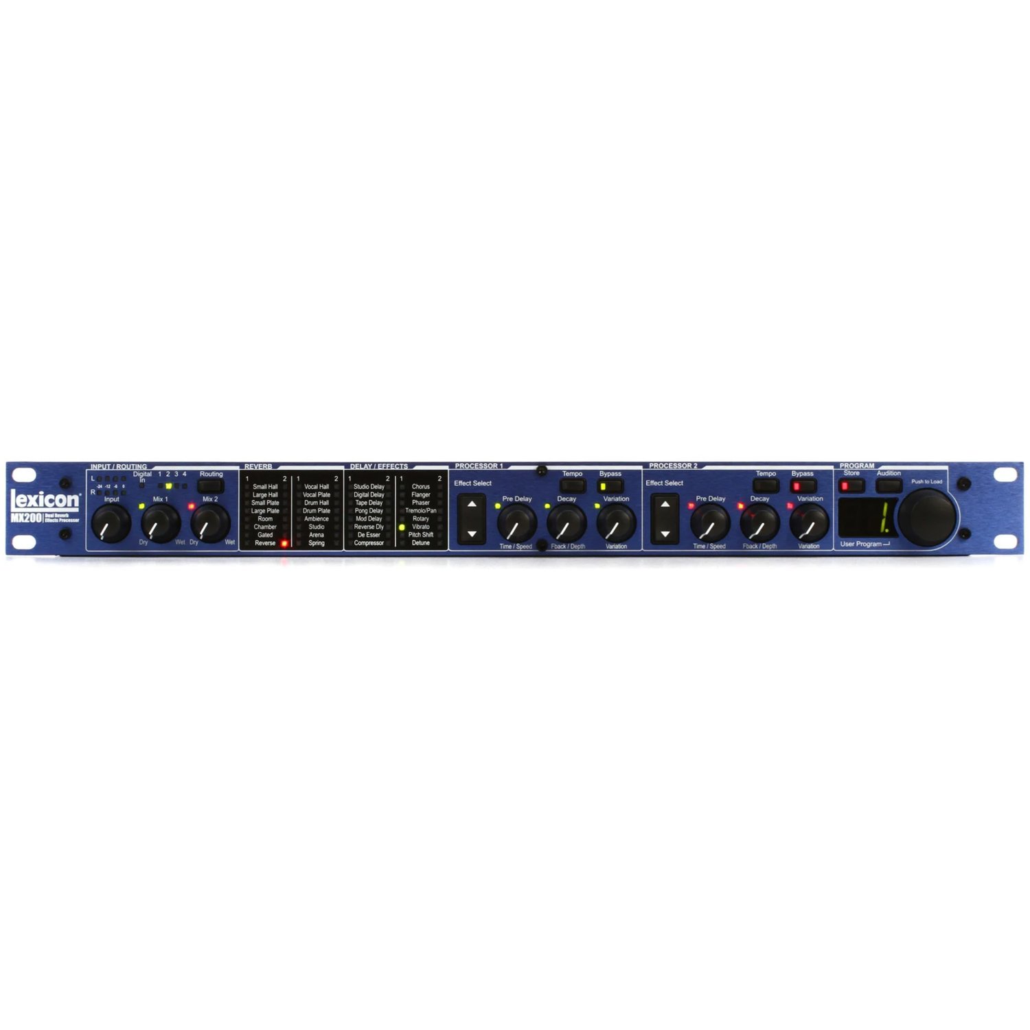 32 legendary Lexicon effects are packed into the Lexicon MX200 Dual Reverb/Effects Processor, a rackmount processor equipped with USB so it can be used as a software plug-in. It’s got raw dual-processor power; instant front-panel access for live performance; and rich, smooth, complex processing algorithms for the studio, as well as specialty effects and dbx dynamics. Every effect and parameter is instantly accessible by a single button push or knob turn, and the powerful editor/librarian software gives you intense, under-the-hood control.