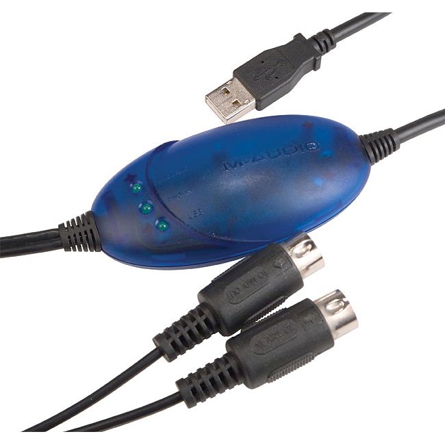 The M-Audio USB Uno 1X1 MIDI Interface is a complete USB-to-MIDI solution, equipped with a USB connection to your computer and a 1-in/1-out 16-channel MIDI connection to your MIDI devices. Tiny unit comes with USB and MIDI extension cables, features MIDI activity indicators, and works for Windows or Mac. Single MIDI in and out connectors make it perfect for connecting a keyboard or controller to your computer quickly and easily. Powered by the USB port. USB supports connection of up to 127 devices simultaneously, any of which may be hot-plugged from the USB bus at any time. Requirements: Windows 98 SE, 2000, ME, or XP; Mac OS X 10.1.5 or greater.
