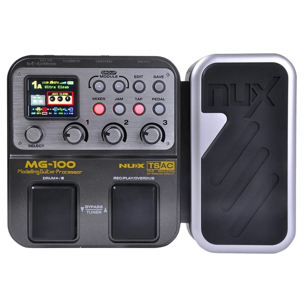 NUX MG-100 offers all guitar effects, including a variety of distortion, compression, modulation, delay, reverb, amplifier and cabinet models. And it comes with a user-friendly interface which you can reach the main controls easily by using Gain, Level and Master knobs on the front. High-Resolution TFT LCD screen allows you to control and adjust everything clear and precise.
