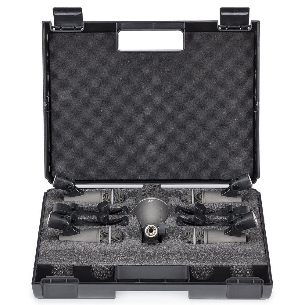 The DK705 is ideal for drum set and high-volume source records. It includes one Q71 Kick Drum Microphone and four Q72 Instrument Microphones. Featuring high SPL handling, the Q71 is optimized to capture the full essence of your bass drum. With a specialized frequency response, the Q72s help reproduce the natural tone and attack of your snare drums and toms.
