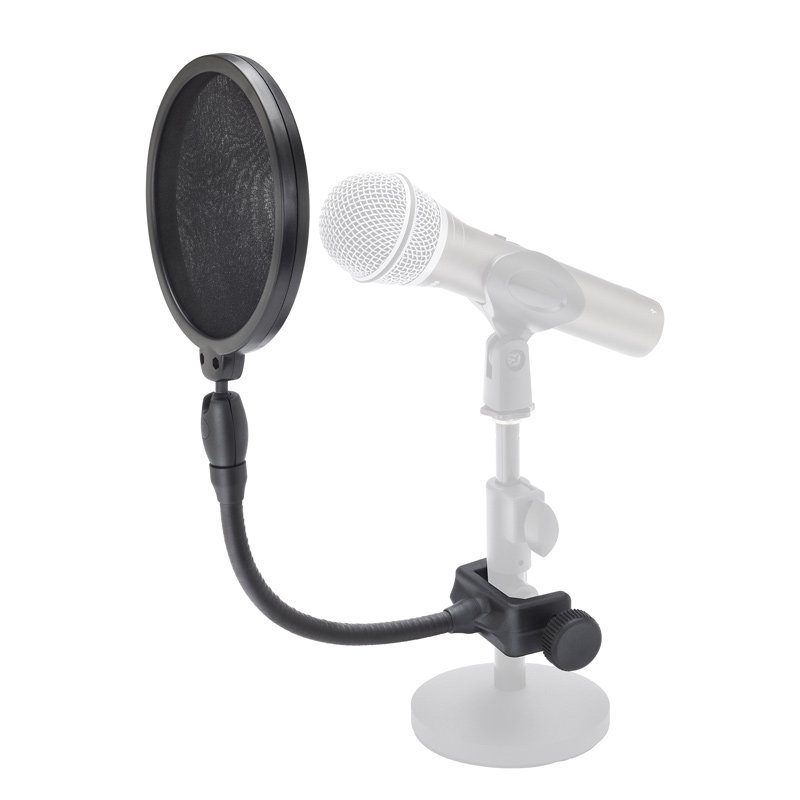 - Dual-layer 4.75″ nylon mesh screen reduces vocal popping (“P-Pops”) and sibilance