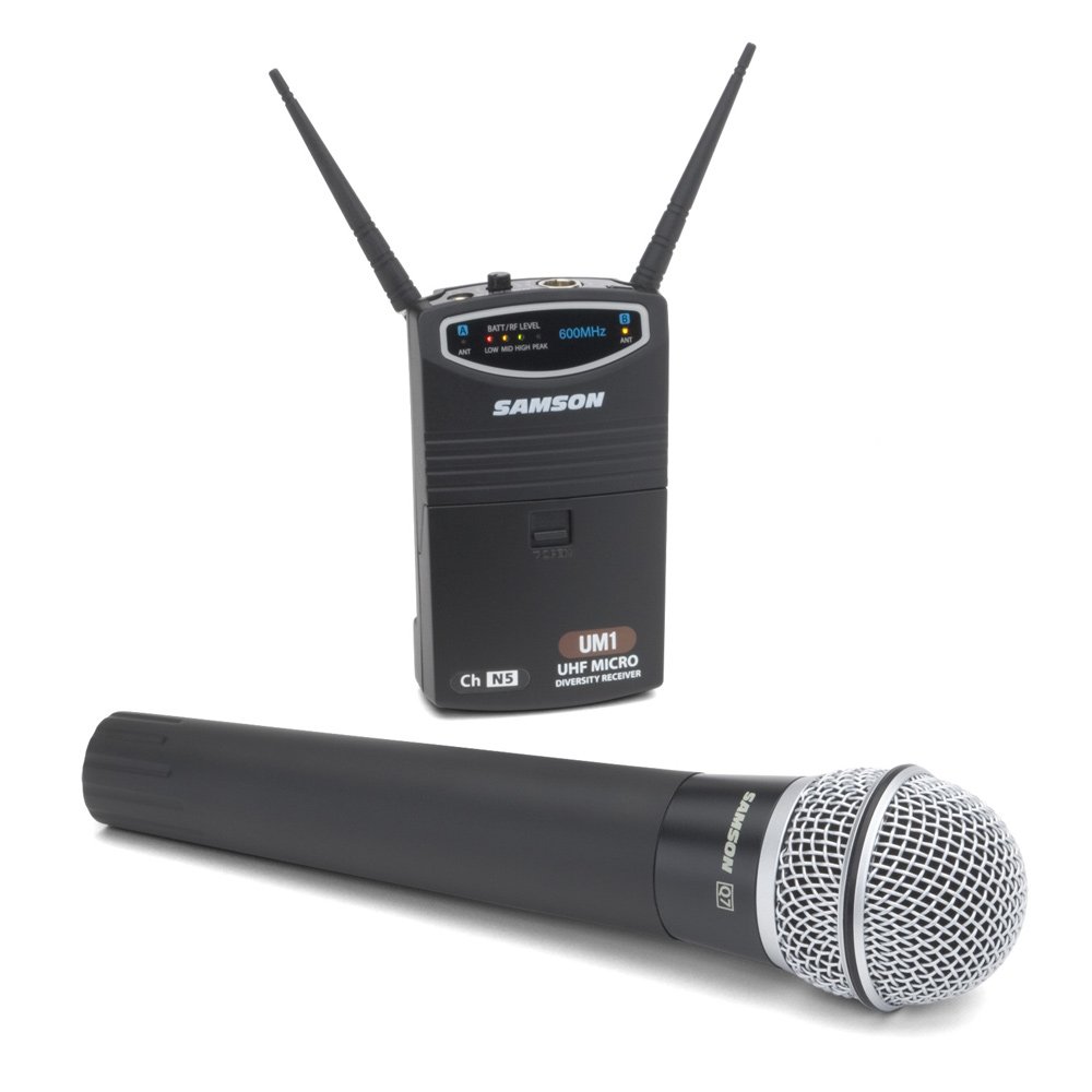 The UM1 is available in six different channels, all operating in the less crowded UHF bandwidth, so multiple UM1 systems (each tuned to a different channel) can be used in the same location without interference. The true diversity technology on this receiver also maximizes active range (up to 300 feet) and reduces potential interference problems through automatic switching between two independent receivers. Additionally, built-in companding noise reduction in all components ensures crystal-clear sound with minimized background noise and hiss.