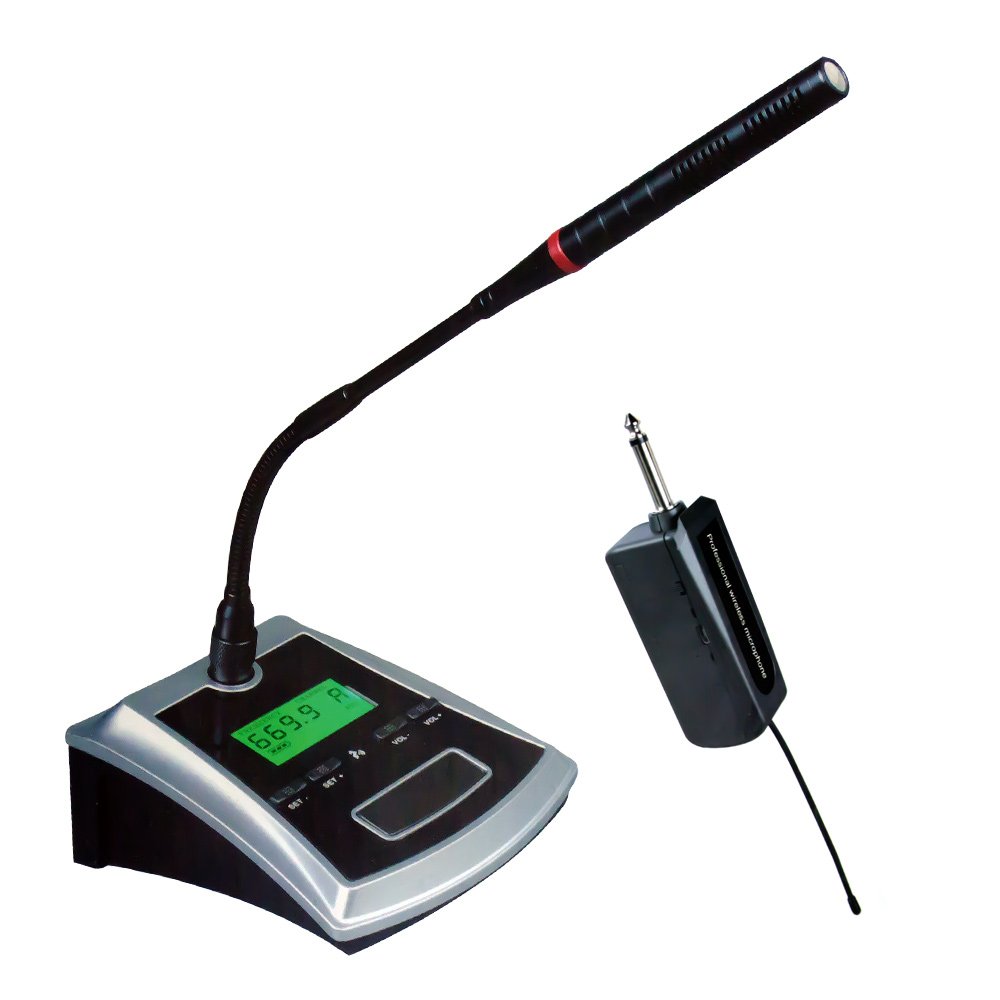 • Independent true diversity podium wireless microphone, interference free frequencies.