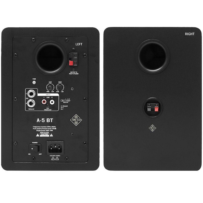 The Tonetech A5BT are a pair of premium-grade 5-inch Bluetooth-powered studio monitors designed for accurate audio reproduction in studio, home, and multimedia environments. Engineered with high-efficiency drivers, multi-input versatility, and a durable MDF enclosure, the A5BT combines performance, style, and functionality in one compact package.