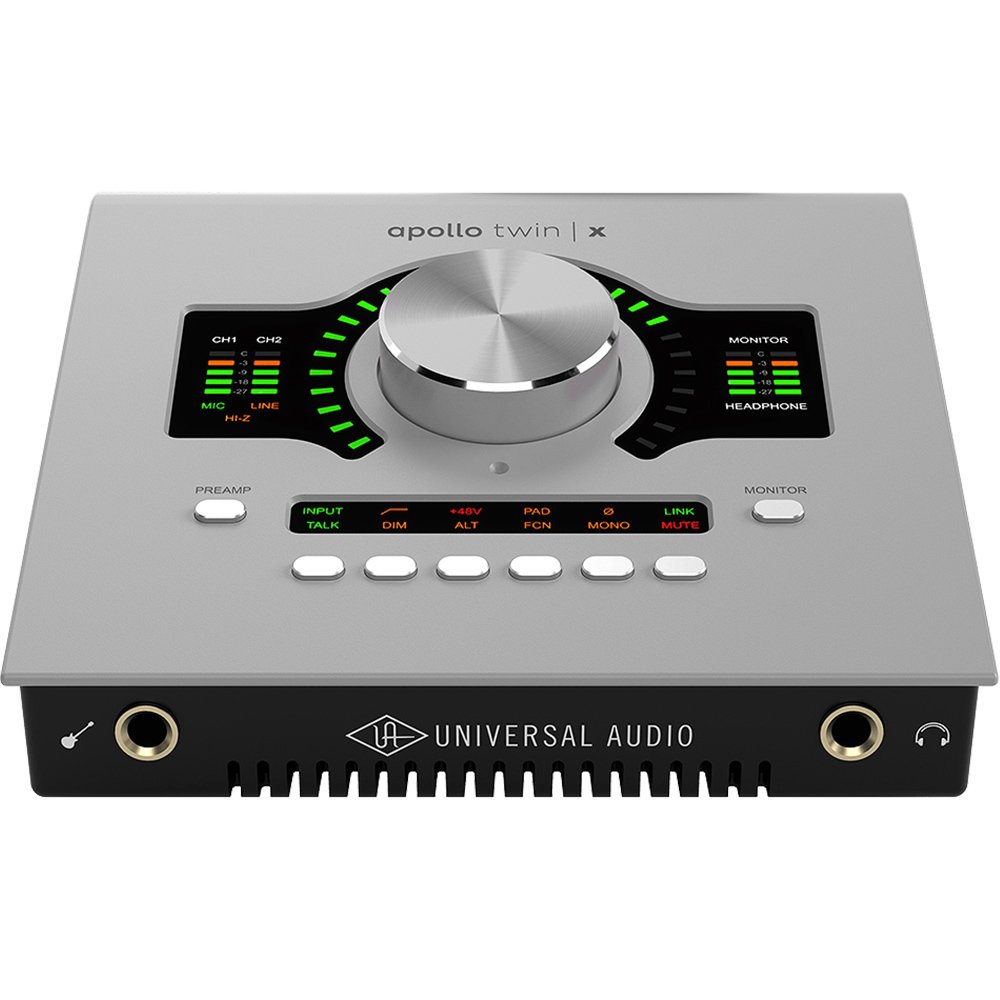 Apollo Twin X’s Unison preamp technology enables you to track in real-time through faithful emulations of classic gear from Neve, Manley, API, and dozens more, giving you the same rich analog textures used on the greatest recordings of all time. Unison goes far beyond traditional software modeling, however, in that it adjusts the preamp circuit itself, including parameters such as impedance, analog gain structure, and much more. When you adjust the Apollo Twin X’s preamp gain knob and physical controls, the plug-in adjusts the preamp’s behavior to match the target preamp. So you’re not simply filtering your audio to approximate the character of a famous preamp — your microphone is now interacting with Apollo Twin X’s input the same way it would behave with the modeled preamplifier.