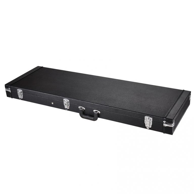 Lockable Universal Electric Bass Guitar Wood Hard-Shell Case fits most electric bass guitars, with sturdy wood construction for strong support and durability. PU surface & inner foam padding with soft plush interior. Bumpers on the bottom for added protection and stability.